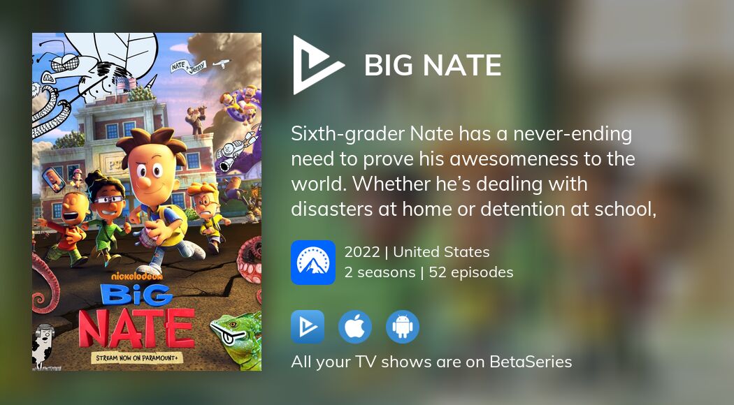 Big Nate premieres on Paramount Plus. Big Nate has a never-ending need to prove his awesomeness to the world whether hes dealing with disasters at home or detention at school. Whether hes dealing with.